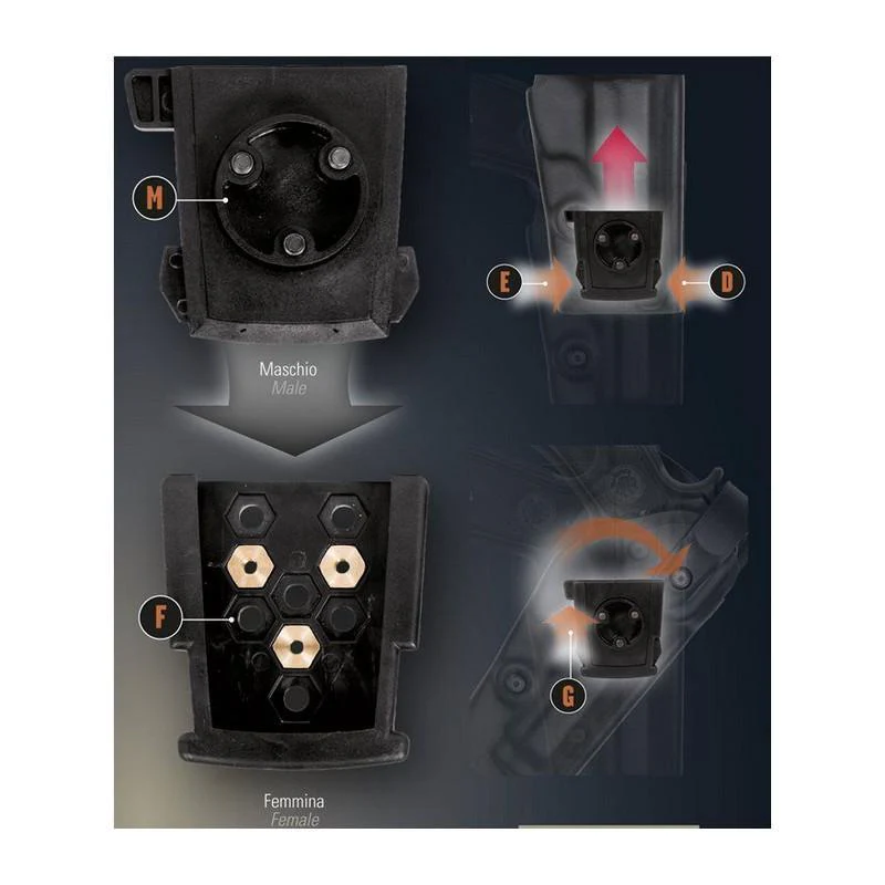 Grâce à sa conception ingénieuse, l’Adaptateur rotatif Vega Quick Disconnect offre la possibilité d’ajuster l’angle et la hauteur de votre holster selon les exigences spécifiques de chaque mission. Cette adaptabilité permet à l’opérateur de personnaliser son équipement pour un confort et une efficacité optimaux en toutes circonstances.
