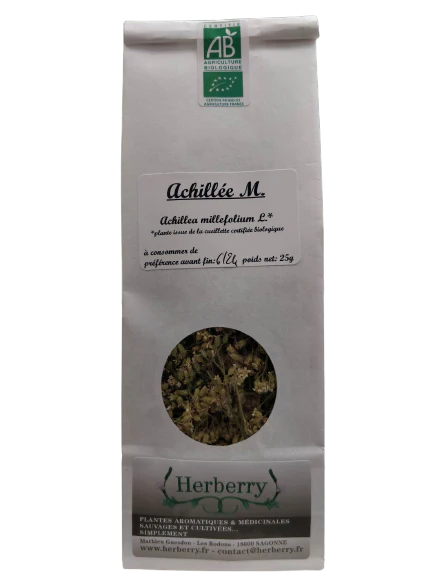 Découvrez l’Achillée millefeuille bio pour tisanes, 25g de chez Herberry.