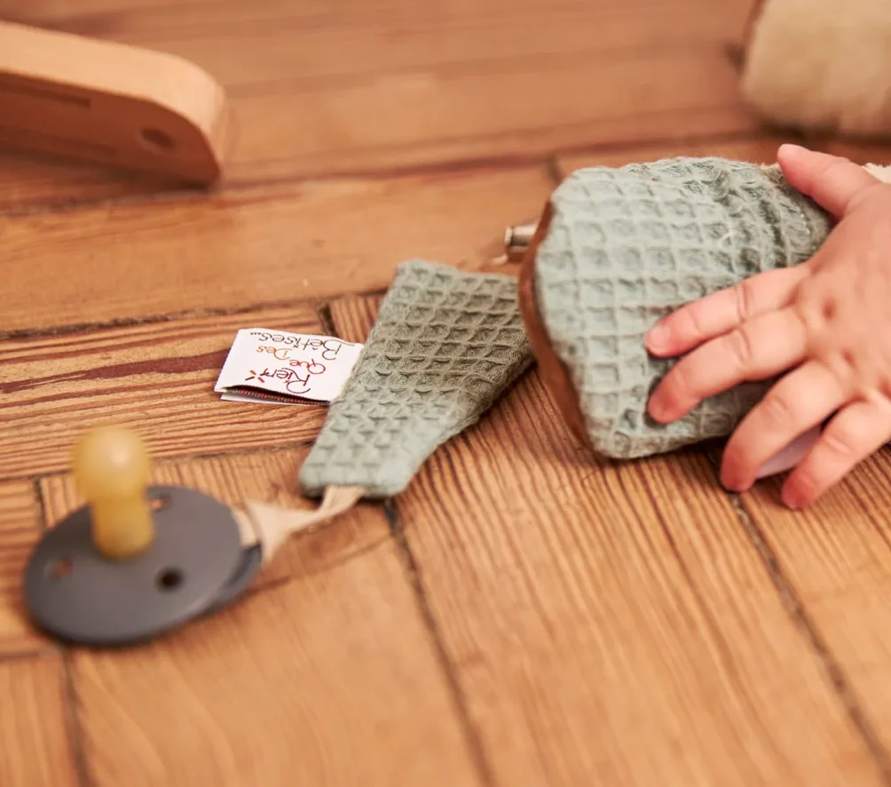 Accessoire idéal que l’on accroche partout. Elle restera bien propre et ne sera plus égarée dans la rue. Bébé adore jouer avec la grande étiquette Rien que des bêtises! Une belle idée cadeau. Fabrication Franco-Belge.