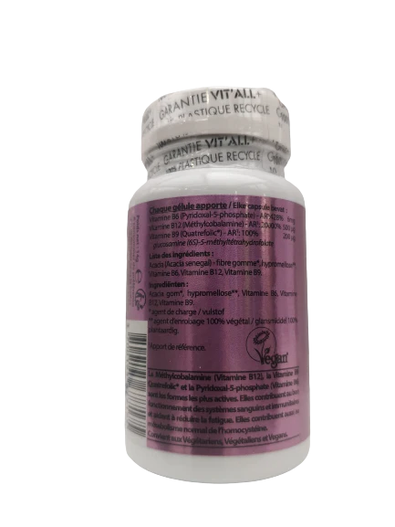 Découvrez le complément alimentaire vitamine B12 et B9 formes actives, 60 gélules du laboratoires Vit’all+.