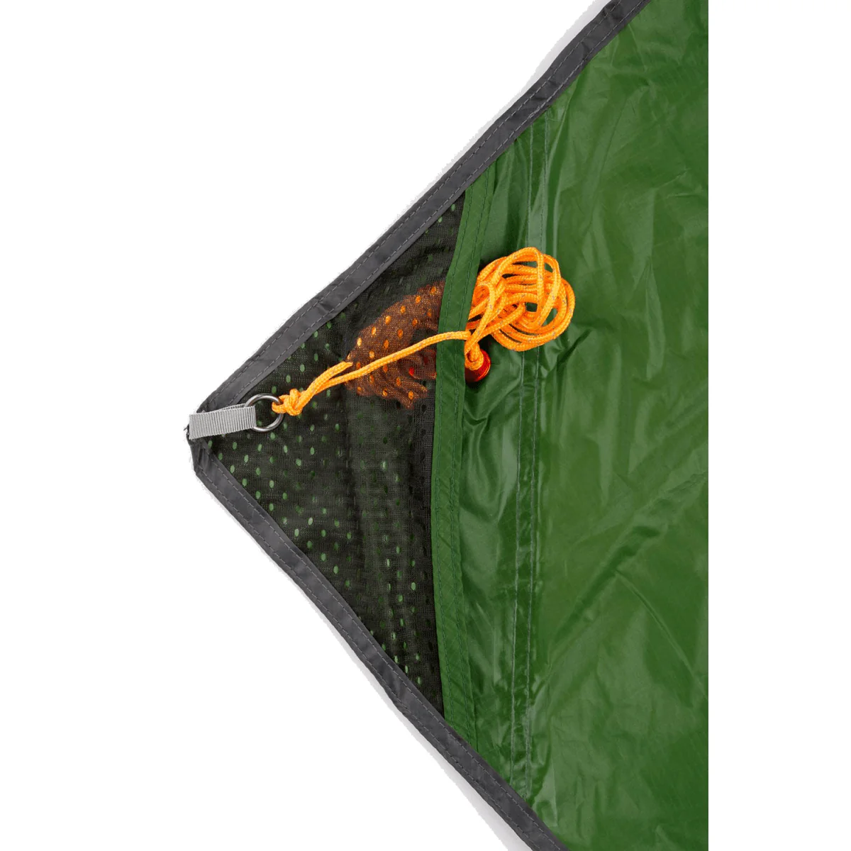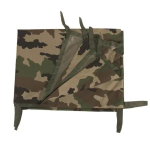 La bâche est accompagnée de cordages, de sardines en aluminium en forme de Y et d’un sac de transport, offrant ainsi un kit complet pour une utilisation sur le terrain. Tous les points de fixation sont dotés de petits sacs pour ranger les cordes, ajoutant une touche de praticité à cet équipement robuste.