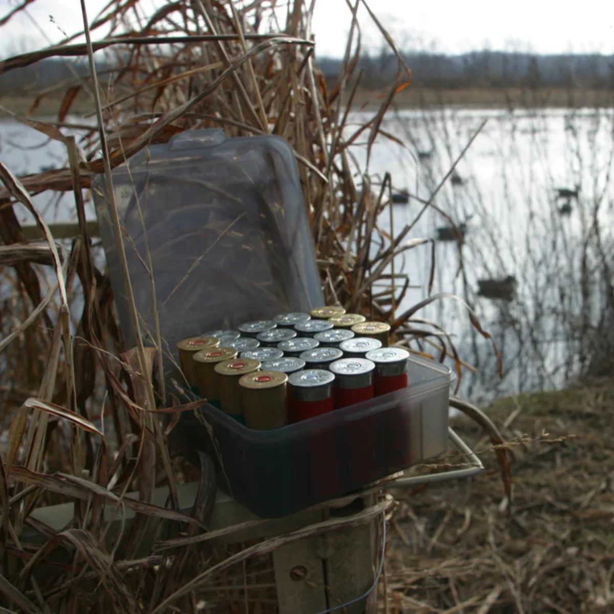 La S25D est une boîte de rangement conçue pour accueillir jusqu’à 25 cartouches de calibres 12 et 20, jusqu’à 3 pouces. Fabriquée en polypropylène pratiquement indestructible, elle assure une protection optimale de vos munitions contre les chocs et les éléments extérieurs.