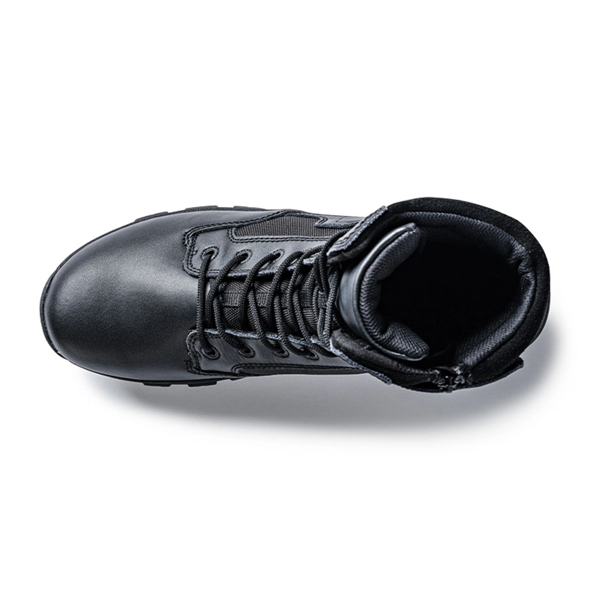 Le système de fermeture combine un laçage classique et un zip, permettant une mise en place rapide et un ajustement précis. Cette caractéristique est essentielle pour les situations nécessitant réactivité et efficacité. De plus, la chaussure intègre des propriétés thermorégulatrices grâce à la mousse EVA, offrant une isolation supérieure par temps chaud et froid, ce qui la rend adaptée à une utilisation toutes saisons.