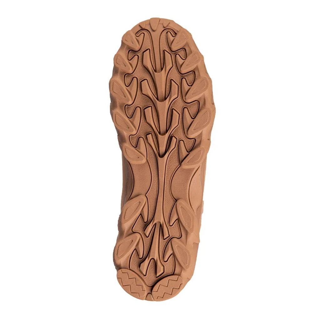 La semelle extérieure en polyuréthane et caoutchouc, offre une excellente adhérence sur tous les types de surfaces et amortit efficacement les chocs, garantissant une grande stabilité même sur terrains difficiles. La semelle intérieure en mousse EVA, amovible et antibactérienne, garde les pieds secs et chauds, même dans des conditions rigoureuses.