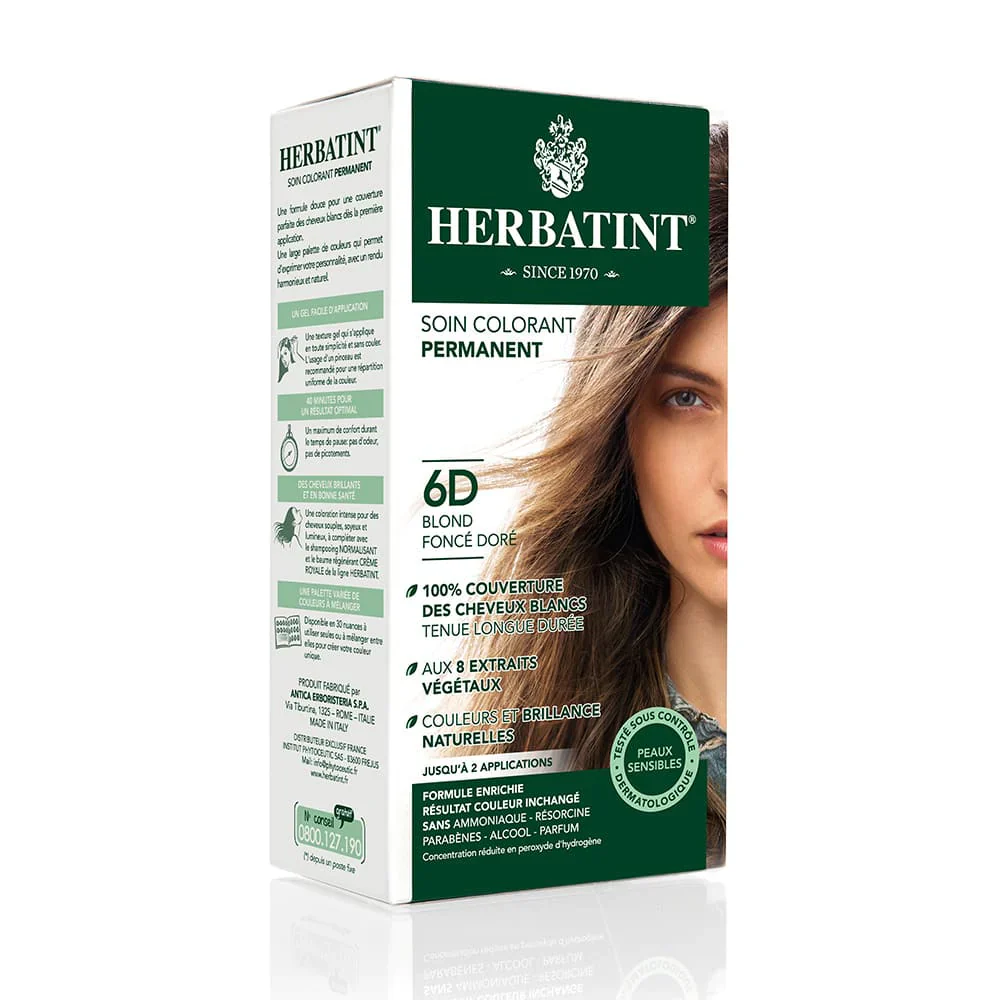 Découvrez la coloration naturelle Blond Foncé Doré 6D,170ml de chez Herbatint.