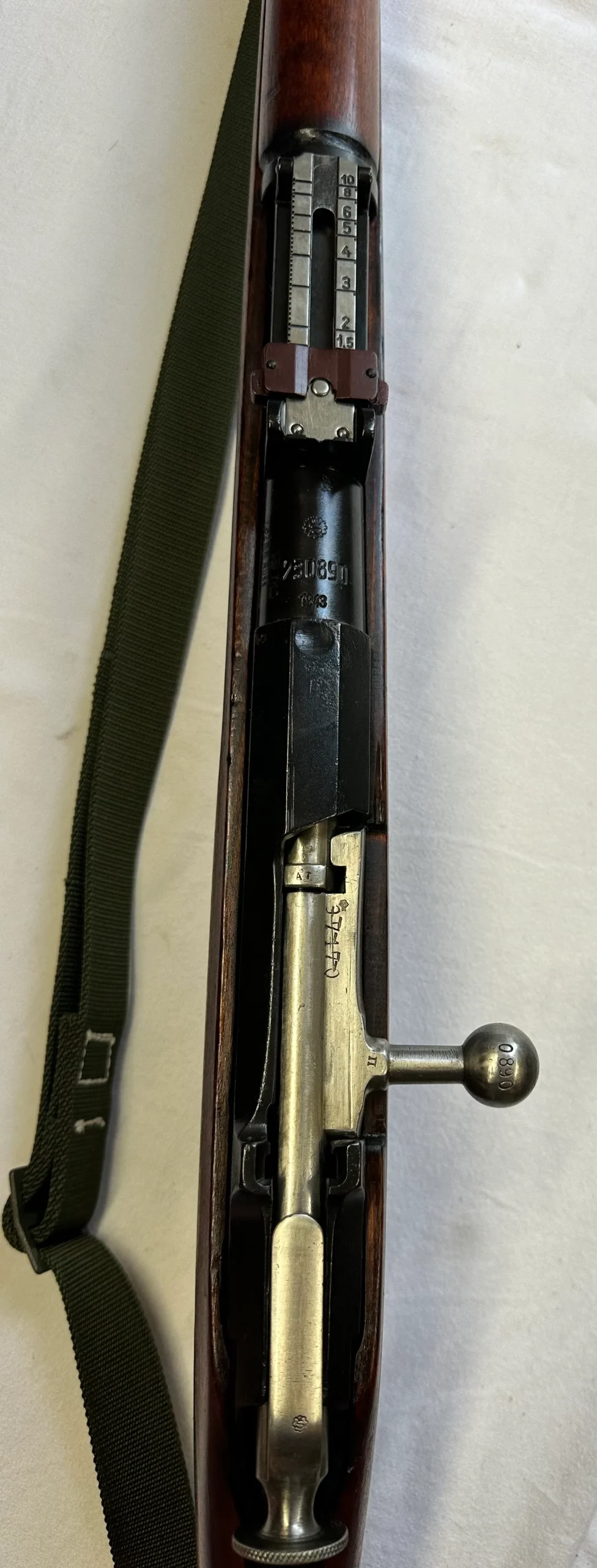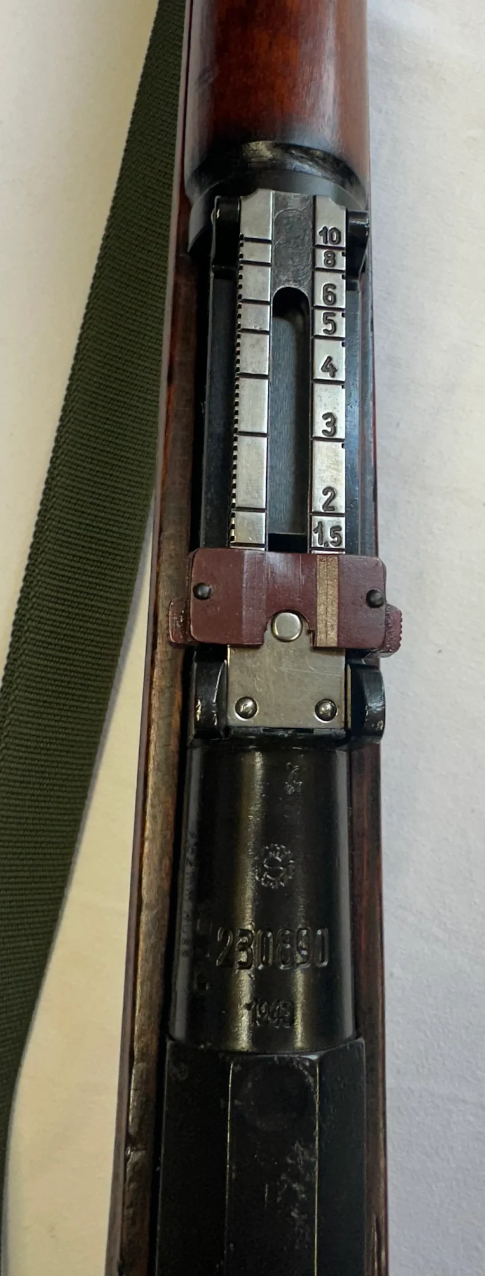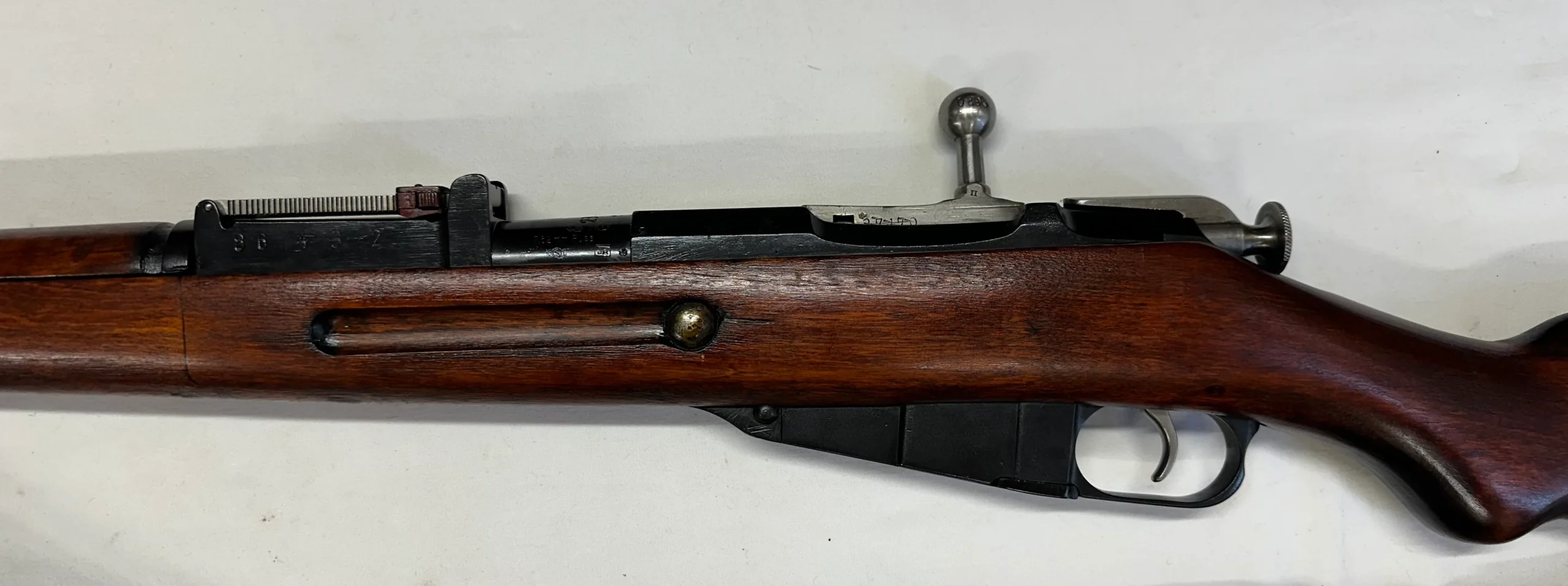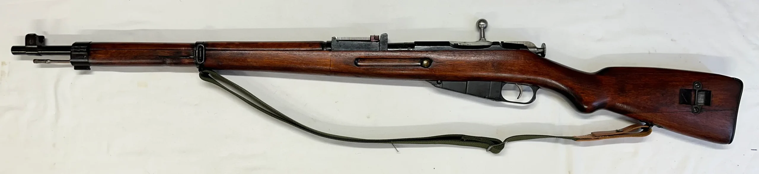 Superbe Mosin finlandais M39, quasi neuf! Une crosse superbe, en 3 parties comme sur beaucoup, un bronzage somptueux, avec sa baguette et sa bretelle d’origine, monomatricule, avec un canon Sako de 1943.