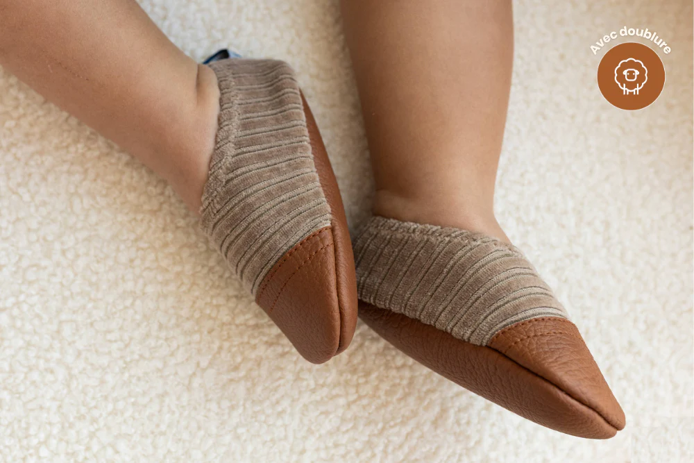 Une jolie paire de chaussons souples et sensation pieds nus, toute chaude et douce grâce à sa doublure intérieure imitation peau de mouton.