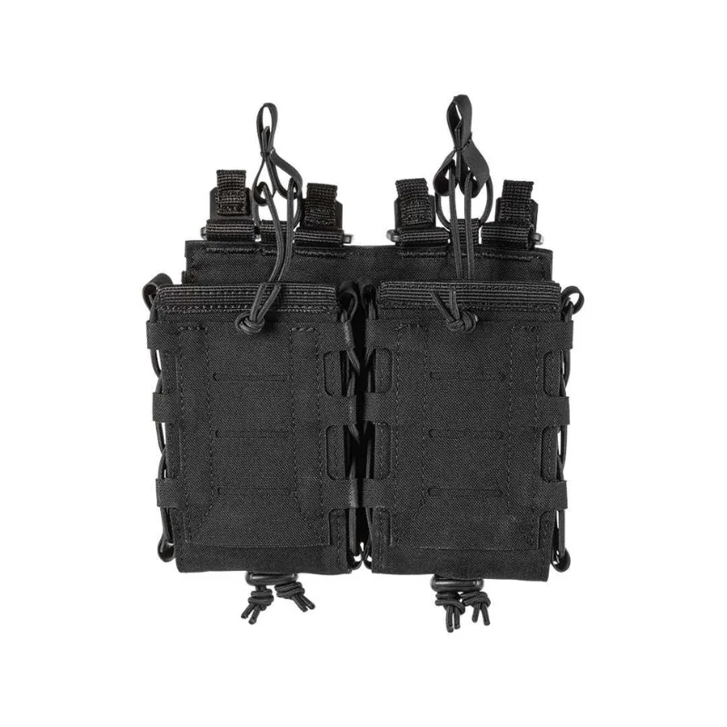 Capable d’accueillir deux chargeurs de calibres variés, cette pochette utilise des panneaux latéraux réglables et un double cordon élastique avec système de verrouillage pour garantir un maintien optimal, quel que soit le type de chargeur. Pour plus de flexibilité, un système de rétention alternatif à l’élastique supérieur est inclus, vous permettant de personnaliser vos options de fixation.