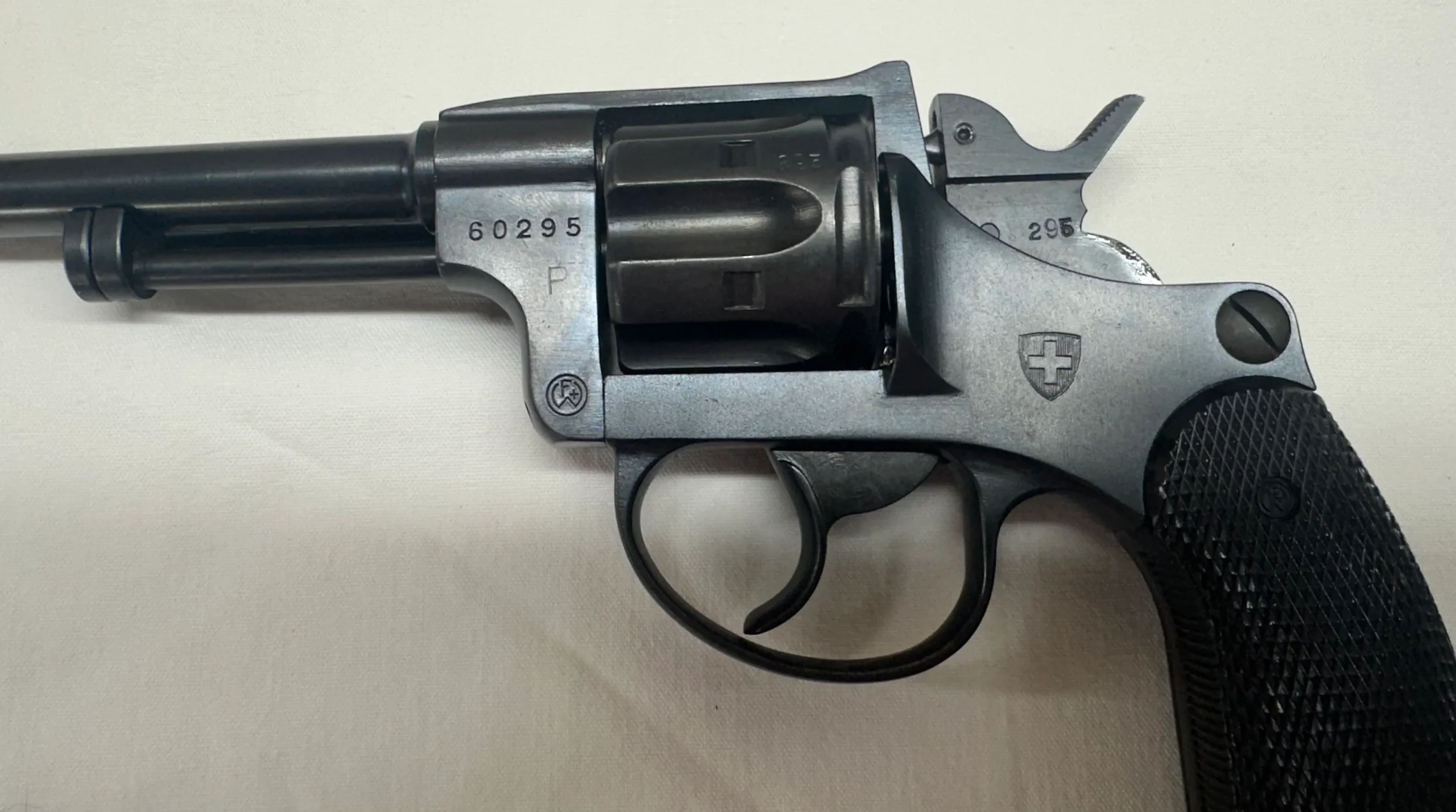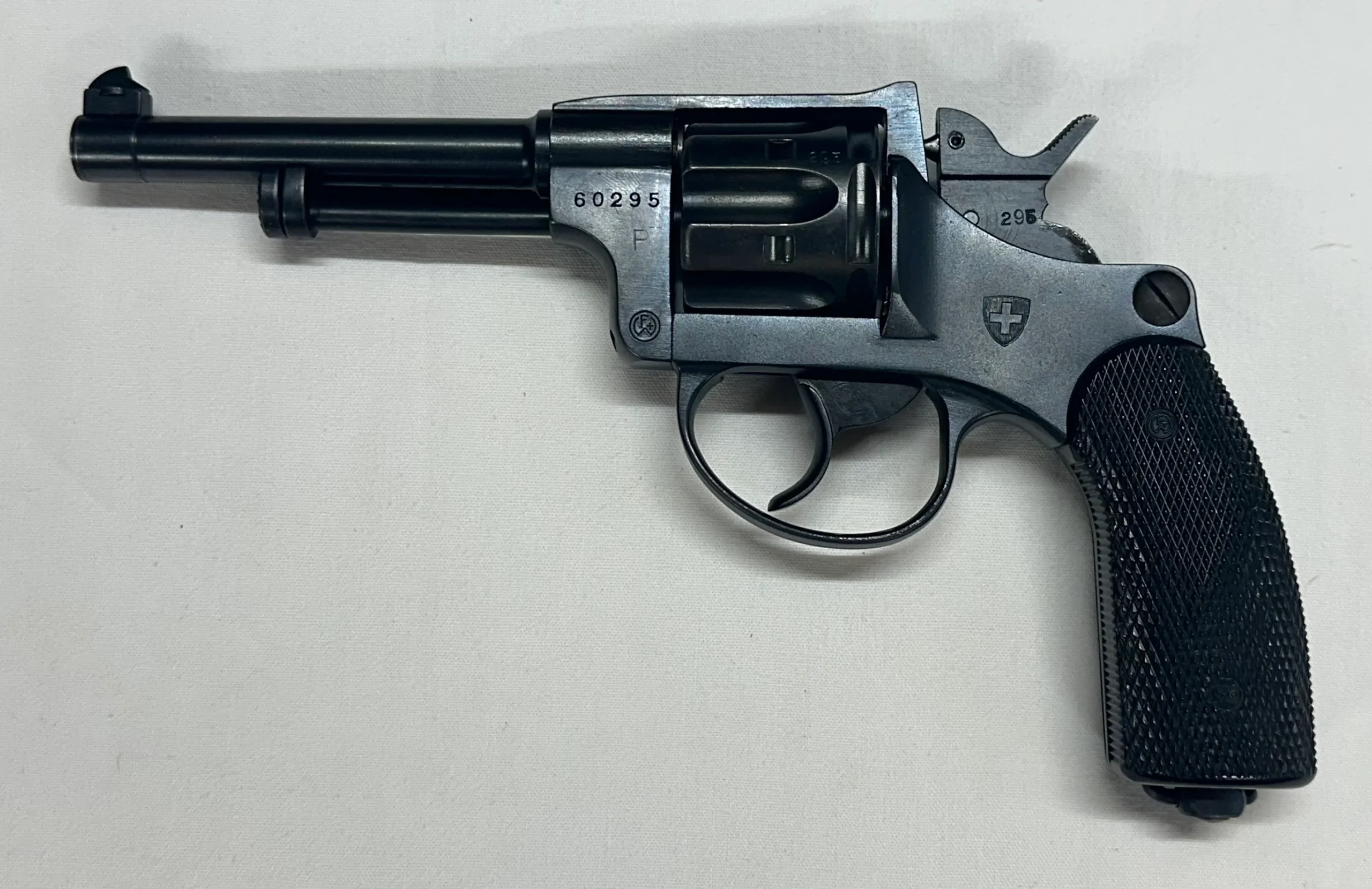 Magnifique révolver suisse d’ordonnance 1882/29, quasi Neuf, bronzage d’origine, pas de poinçons parasites, canon miroir, fabrication WF Thun.